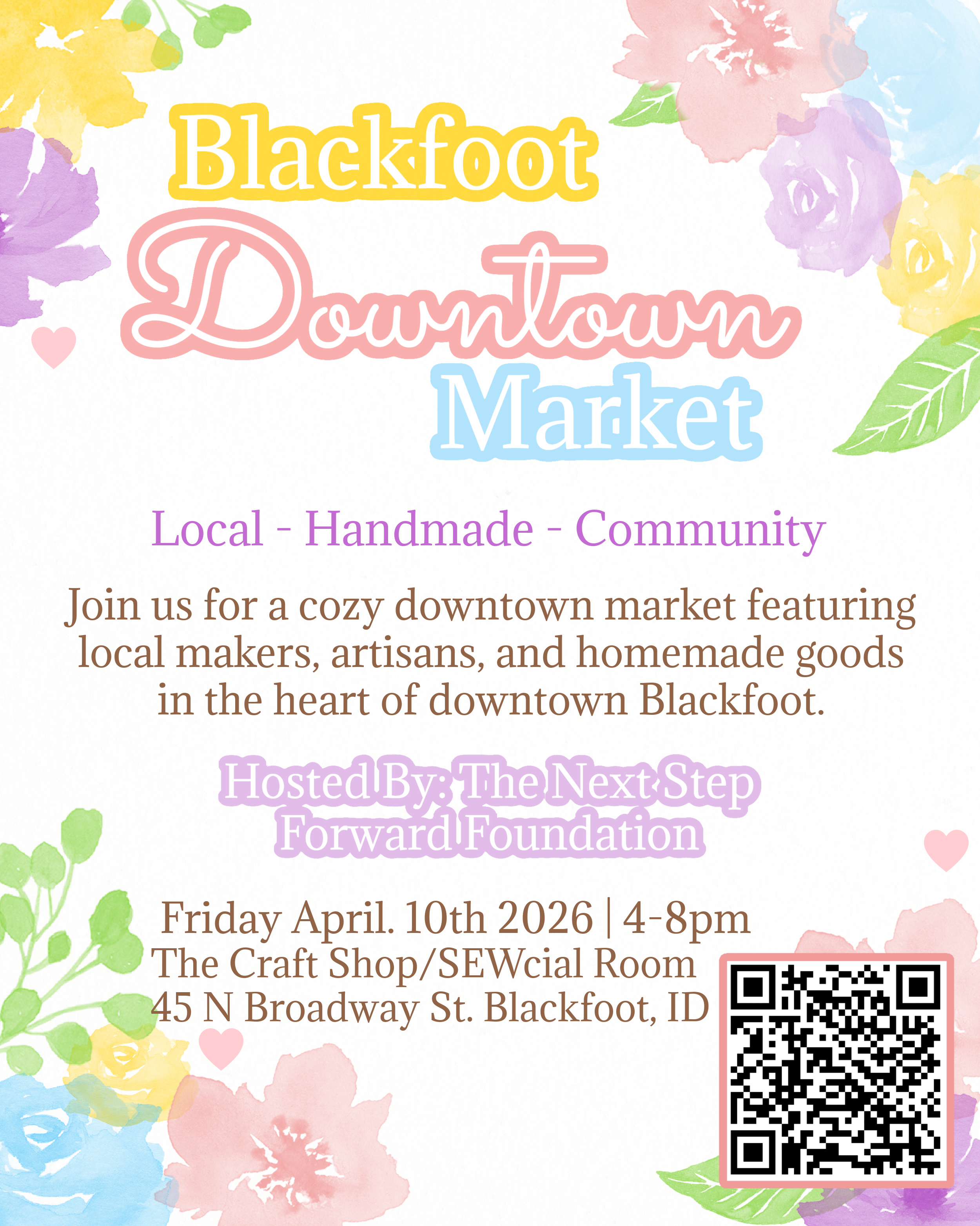 The Blackfoot Downtown Market brings together local makers, small businesses, and families to support creativity, connection, and opportunity while helping fund programs that give people their next step forward.